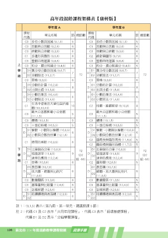 課程 單元名稱 節 總節數 課程 單元名稱 節 總節數
