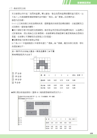 以下為 2017 年國教院對三年級學生進行「周長」與「面積」概念的學力檢測,學生