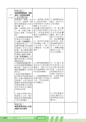 3. 合班共同討論分享: A5: 我們發現面積相 R3、R5: 學 生 說