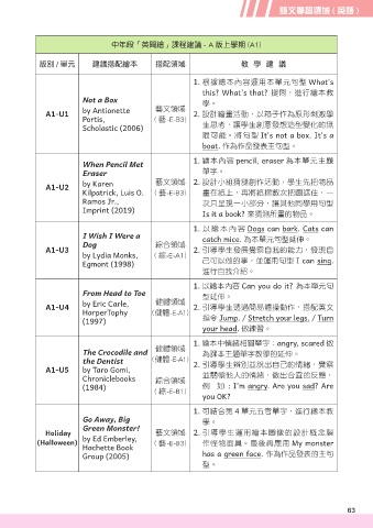 中年段「英閱繪」課程建議 - A 版上學期 (A1)