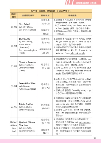 高年段「英閱繪」課程建議 - B 版上學期 (B1)