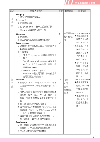 Warm up 5’ 簡易版繪本 Oral assessment